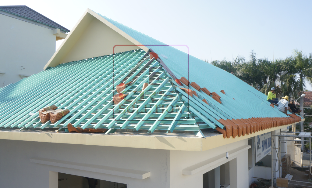 Khi đã có phần khung kèo hoàn thiện thì công việc lợp mái ngói đóng vai trò rất quan trọng.
